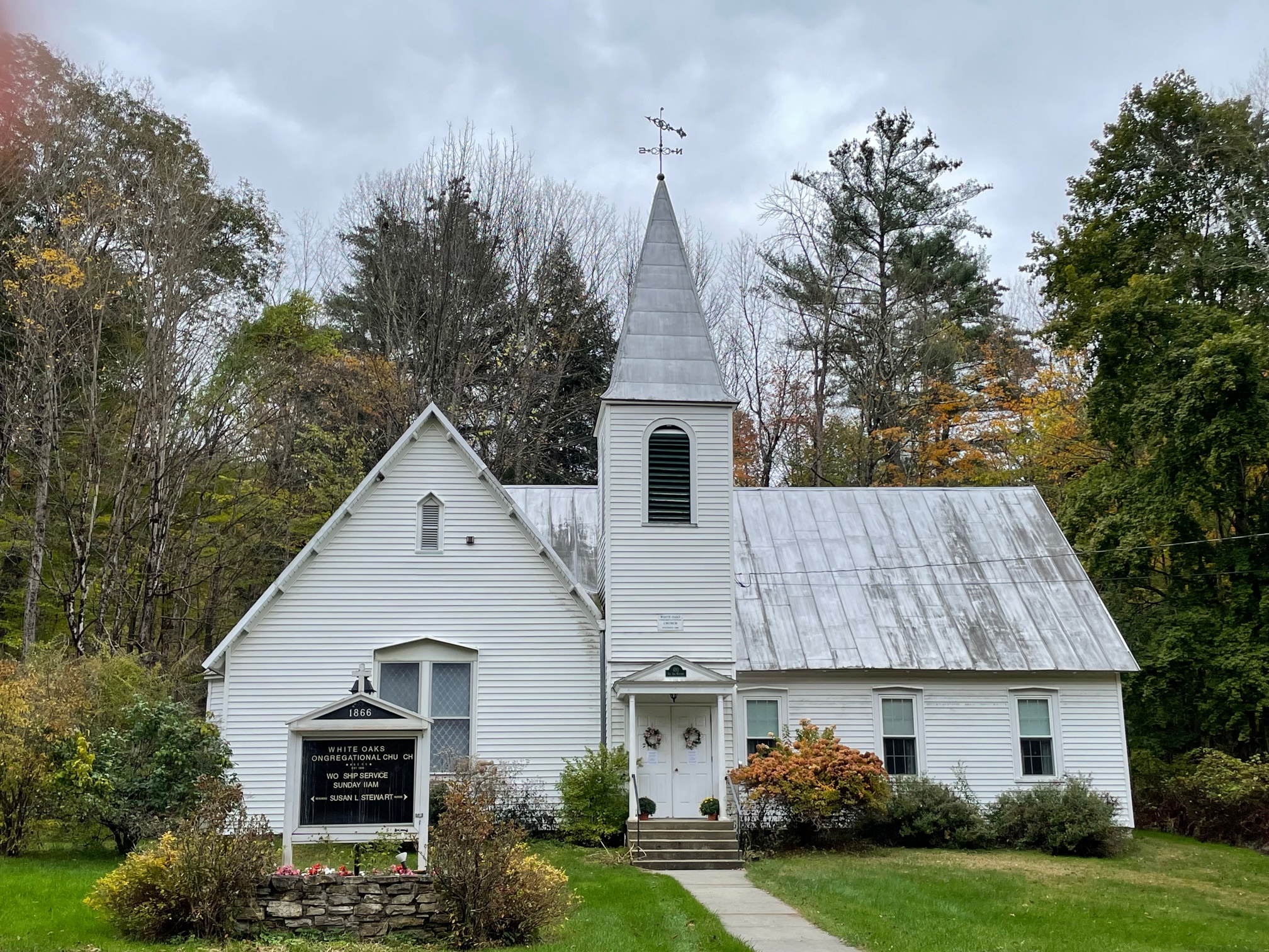 After a drive along the Mohawk Trail, I found myself at White Oaks Congregational Church (#43) in Williamstown, Massachusetts. I was ninety minutes early and was welcomed inside for freshly baked shortbread and tea with the moderator and pastor. Later, we were joined by other members. The church has experienced several deaths in recent years. It has carved out a unique ministry of providing storage and finding new homes for household items following those losses. Members were looking forward to an upcoming bazaar with a pancake breakfast.