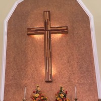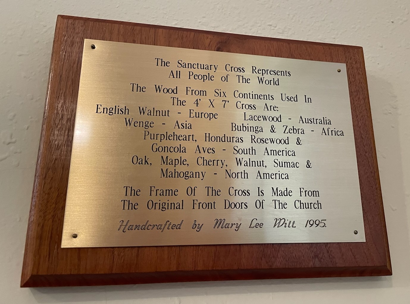 In her home workshop, one member created a sanctuary cross out of wood from seven continents.