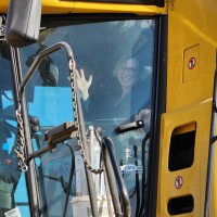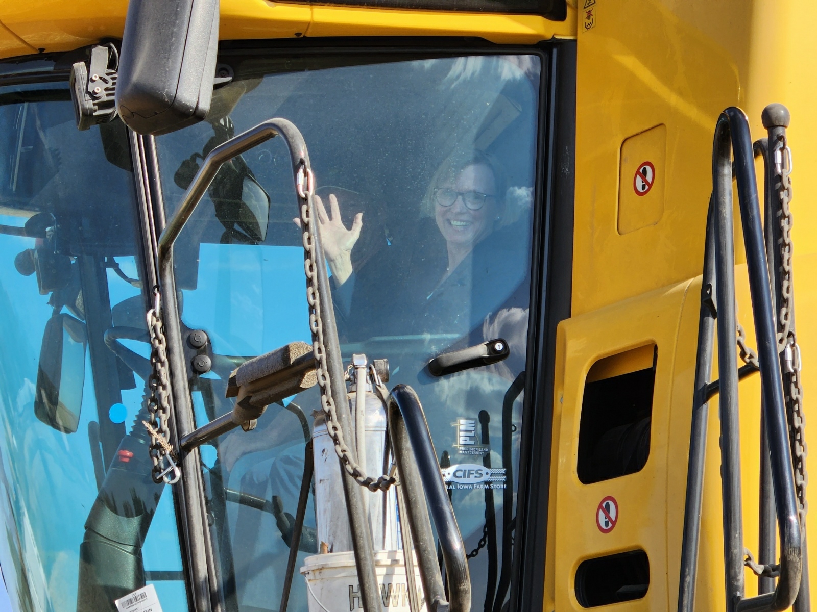 - Ashley driving the combine