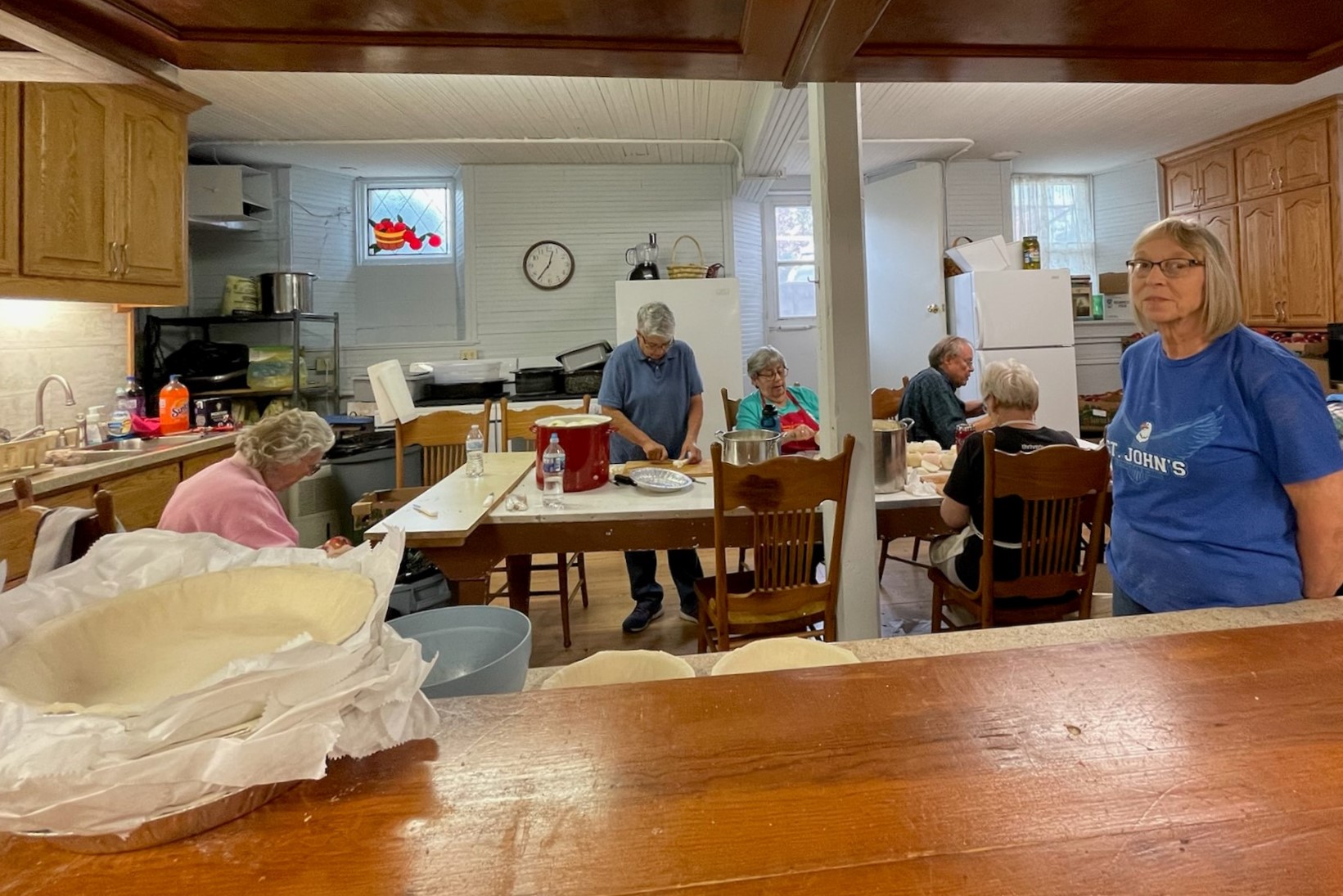 For about twenty years, the members of First Congregational Church of Elkader, Iowa (#13) have been preparing pies to raise money. It started with just a few for the church members. This year, they sold over 560 pies. I was welcomed by the hardworking crew on their second day and learned a lot about well-organized baking methods and the history of the church.