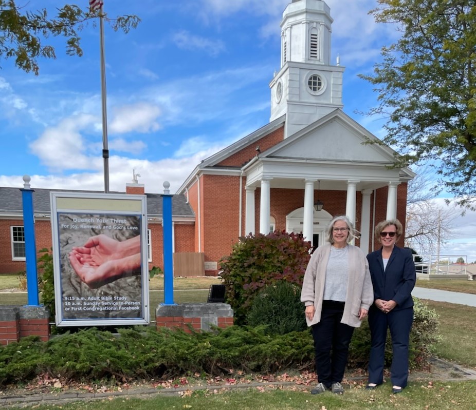 I enjoyed a Saturday afternoon conversation with members Pilgrim Congregational Church of Green Bay, Wisconsin (#12), situated on the edge of a commercial district, not far from Lambeau Field. The timing of my visit, as with many things during the fall in Green Bay, was influenced by a Packers game the next afternoon. The church leaders are encouraged by how a newly introduced staggered Sunday schedule has been received. Some members convene at 9:30 in the fellowship hall for an informal service that includes time for dialogue after the sermon. Senior Minister Andy King preaches there and then joins a 10:00 service in the sanctuary which follows a traditional liturgy. At around 10:30, all gather in the fellowship hall for coffee hour. The church is pleased to rent space to St. Joseph’s School and another worshipping community, Grace of Salvation
