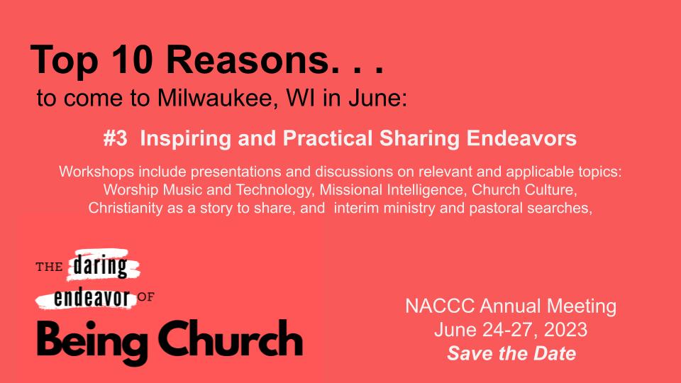 We continue to look forward to our Annual Meeting and Conference in Brookfield, WI this June. We are excited about the welcome the Wisconsin churches will provide, the opportunities for fellowship and worship, and the information and inspiration our presenters will bring.